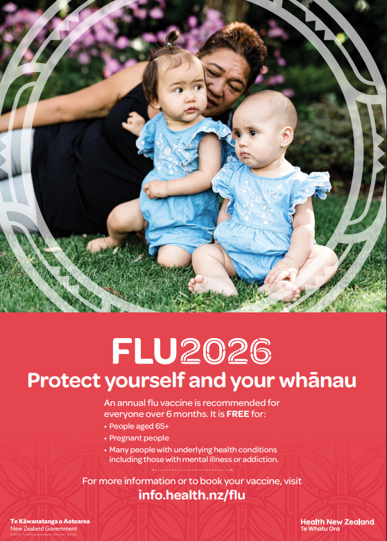 The annual flu vaccine is avaliable from Wednesday April 1st. It is recommended for everyone over 6 months. Call us now on 04 920 4562 to book a vaccination appointment.